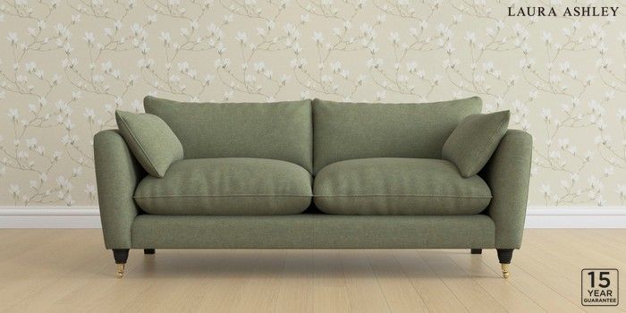 6.12.1 Buy Casterton by Laura Ashley 3 Seater Sofa Harley Moss Green Low Brass Castor - Black from the Next UK online shop Click here to use our accessible website