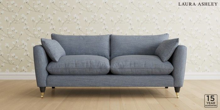 6.12.1 Buy Casterton by Laura Ashley 3 Seater Sofa Harley Seaspray Blue Low Brass Castor - Black from the Next UK online shop Click here to use our accessible website