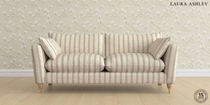 6.12.1 Buy Casterton by Laura Ashley 3 Seater Sofa Kinsham Stripe Natural Low Brass Castor - Light Oak from the Next UK online shop Click here to use our accessible website