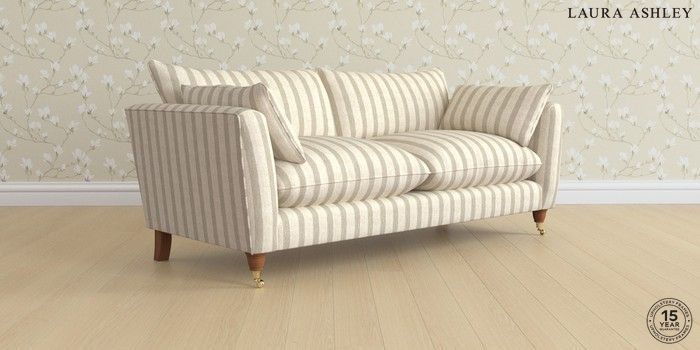 6.12.1 Buy Casterton by Laura Ashley 3 Seater Sofa Kinsham Stripe Natural Low Brass Castor - Teak from the Next UK online shop Click here to use our accessible website