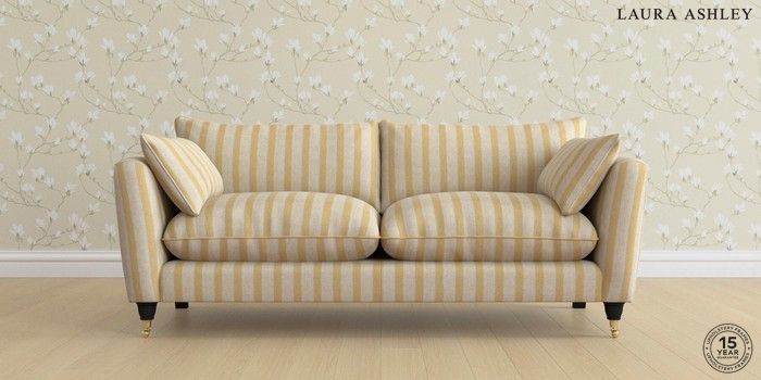 7.0.3 Buy Casterton by Laura Ashley 3 Seater Sofa Kinsham Stripe Ochre Yellow Low Brass Castor - Black from the Next UK online shop Click here to use our accessible website