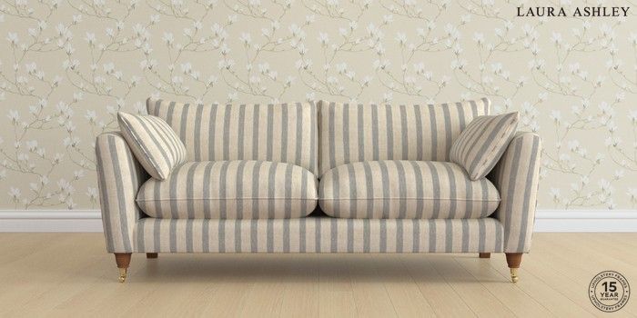 6.12.1 Buy Casterton by Laura Ashley 3 Seater Sofa Kinsham Stripe Seaspray Blue Low Brass Castor - Teak from the Next UK online shop Click here to use our accessible website