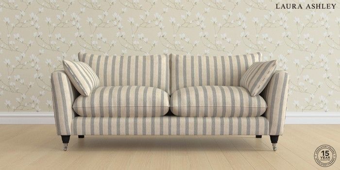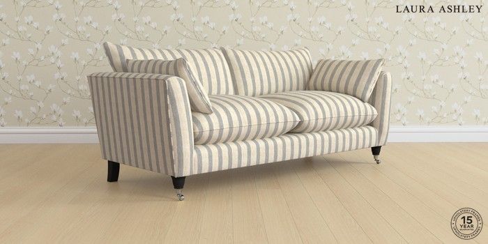 6.12.1 Buy Casterton by Laura Ashley 3 Seater Sofa Kinsham Stripe Seaspray Blue Low Chrome Castor - Black from the Next UK online shop Click here to use our accessible website
