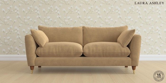 6.12.1 Buy Casterton by Laura Ashley 3 Seater Sofa Lundar Chenille Caramel Natural Low Brass Castor - Teak from the Next UK online shop Click here to use our accessible website