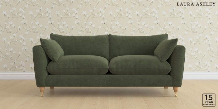 6.12.1 Buy Casterton by Laura Ashley 3 Seater Sofa Lundar Chenille Ivy Green Low Brass Castor - Light Oak from the Next UK online shop Click here to use our accessible website