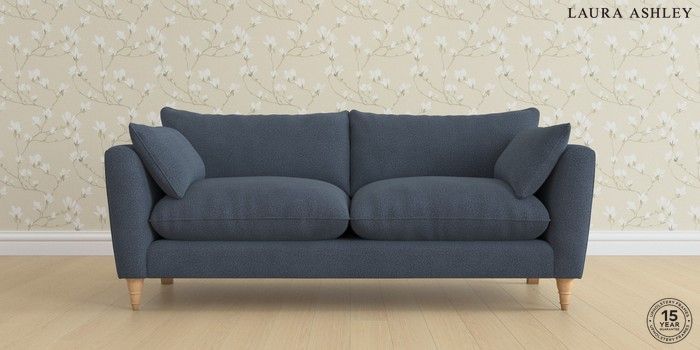 6.12.1 Buy Casterton by Laura Ashley 3 Seater Sofa Lundar Chenille Navy Blue Low Turned - Light Oak from the Next UK online shop Click here to use our accessible website
