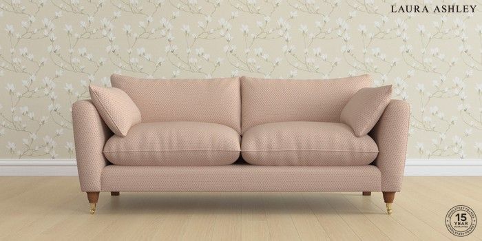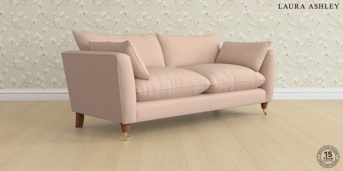 6.12.1 Buy Casterton by Laura Ashley 3 Seater Sofa Melbreak Geo Chalk Pink Low Brass Castor - Teak from the Next UK online shop Click here to use our accessible website