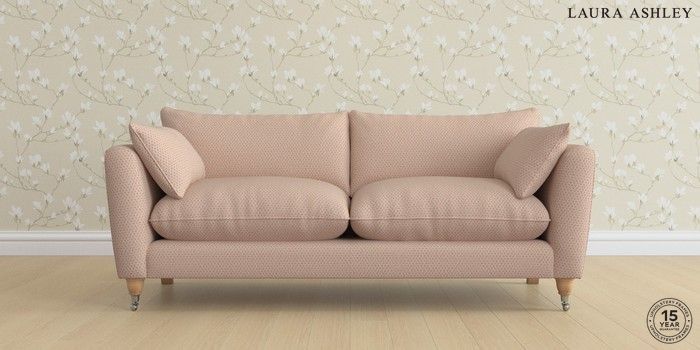 6.12.1 Buy Casterton by Laura Ashley 3 Seater Sofa Melbreak Geo Chalk Pink Low Chrome Castor - Light Oak from the Next UK online shop Click here to use our accessible website