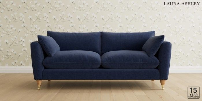 6.12.13 Buy Casterton by Laura Ashley 3 Seater Sofa Nantmor Midnight Navy Low Brass Castor - Light Oak from the Next UK online shop Click here to use our accessible website