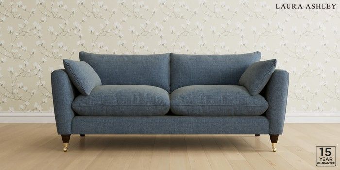 6.12.1 Buy Casterton by Laura Ashley 3 Seater Sofa Orla Seaspray Blue Low Brass Castor - Chestnut from the Next UK online shop Click here to use our accessible website