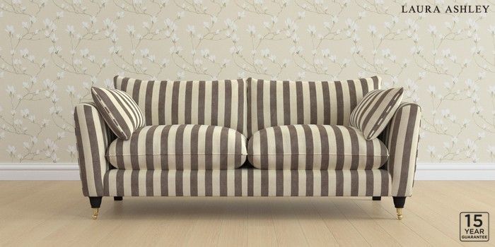 6.12.1 Buy Casterton by Laura Ashley 3 Seater Sofa Orla Stripe Dark Truffle Natural Low Brass Castor - Black from the Next UK online shop Click here to use our accessible website