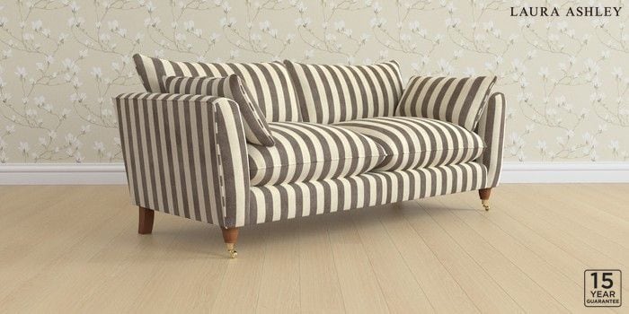 6.12.1 Buy Casterton by Laura Ashley 3 Seater Sofa Orla Stripe Dark Truffle Natural Low Brass Castor - Teak from the Next UK online shop Click here to use our accessible website