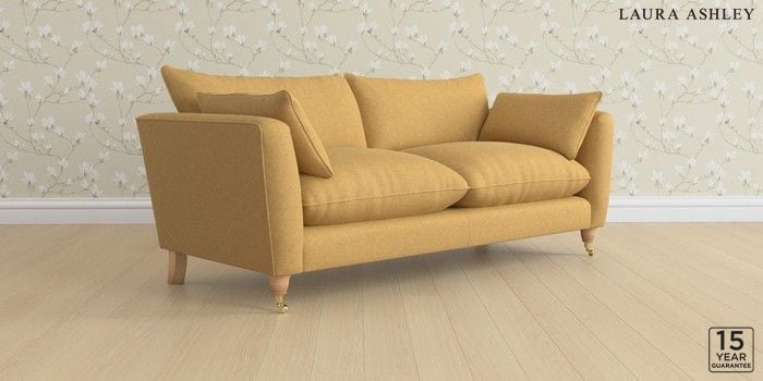 6.12.1 Buy Casterton by Laura Ashley 3 Seater Sofa Peyton Ochre Yellow Low Brass Castor - Light Oak from the Next UK online shop Click here to use our accessible website