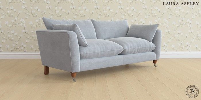 6.12.1 Buy Casterton by Laura Ashley 3 Seater Sofa Peyton Powder Blue Low Chrome Castor - Teak from the Next UK online shop Click here to use our accessible website