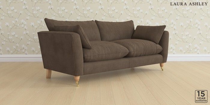 6.12.1 Buy Casterton by Laura Ashley 3 Seater Sofa Sinclair Cord Chocolate Brown Low Brass Castor - Light Oak from the Next UK online shop Click here to use our accessible website