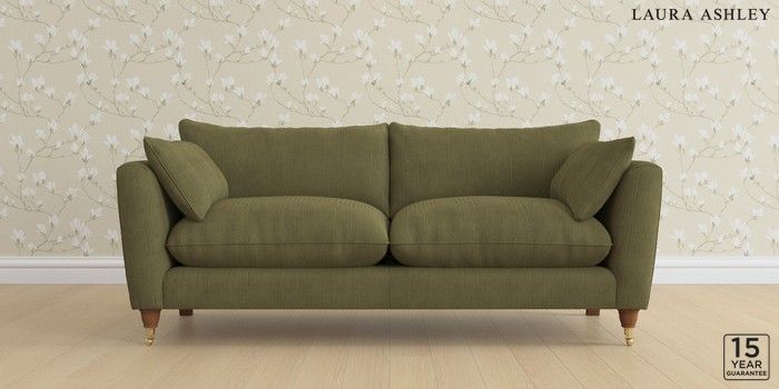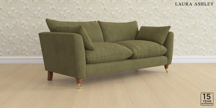6.12.1 Buy Casterton by Laura Ashley 3 Seater Sofa Sinclair Cord Ivy Green Low Brass Castor - Teak from the Next UK online shop Click here to use our accessible website