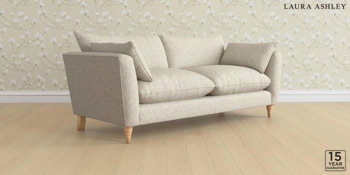 6.12.1 Buy Casterton by Laura Ashley 3 Seater Sofa Tichwell Stone Natural Low Turned - Light Oak from the Next UK online shop Click here to use our accessible website