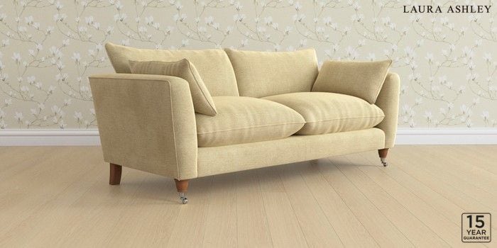 6.12.1 Buy Casterton by Laura Ashley 3 Seater Sofa Edwin Chenille Truffle Natural Low Chrome Castor - Teak from the Next UK online shop Click here to use our accessible website