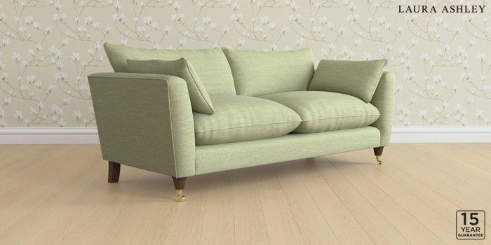 6.12.1 Buy Casterton by Laura Ashley 3 Seater Sofa Kinsham Hedgerow Green Low Brass Castor - Chestnut from the Next UK online shop Click here to use our accessible website