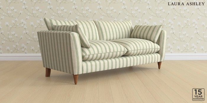 6.12.1 Buy Casterton by Laura Ashley 3 Seater Sofa Kinsham Stripe Hedgerow Green Low Turned - Teak from the Next UK online shop Click here to use our accessible website