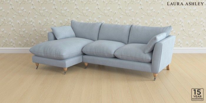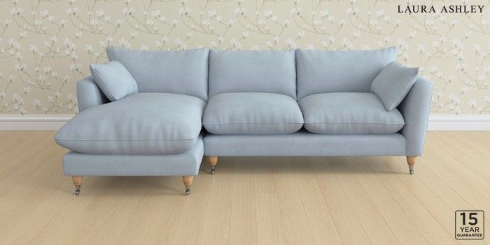 6.12.1 Buy Casterton by Laura Ashley Medium Sofa Chaise - Left Hand Ailsworth Newport Blue Low Chrome Castor - Light Oak from the Next UK online shop Click here to use our accessible website