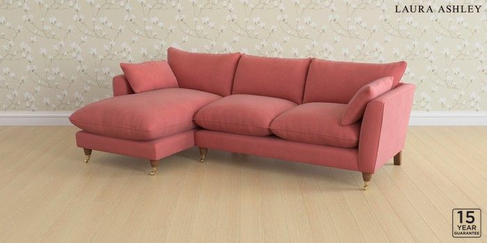 6.12.1 Buy Casterton by Laura Ashley Medium Sofa Chaise - Left Hand Ailsworth Old Rose Pink Low Brass Castor - Teak from the Next UK online shop Click here to use our accessible website