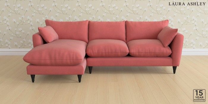 6.12.1 Buy Casterton by Laura Ashley Medium Sofa Chaise - Left Hand Ailsworth Old Rose Pink Low Turned - Black from the Next UK online shop Click here to use our accessible website