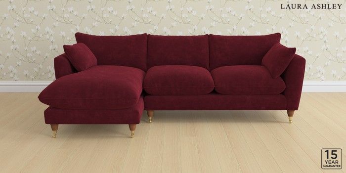 6.12.1 Buy Casterton by Laura Ashley Medium Sofa Chaise - Left Hand Alwyn Velvet Burgundy Red Low Brass Castor - Teak from the Next UK online shop Click here to use our accessible website