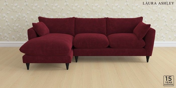 6.12.1 Buy Casterton by Laura Ashley Medium Sofa Chaise - Left Hand Alwyn Velvet Burgundy Red Low Turned - Black from the Next UK online shop Click here to use our accessible website