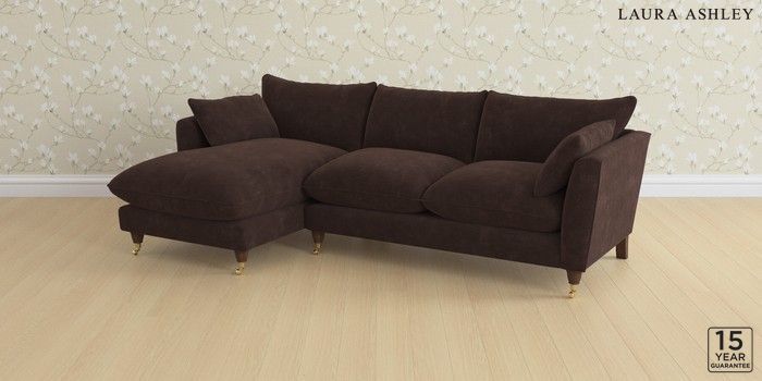 6.12.1 Buy Casterton by Laura Ashley Medium Sofa Chaise - Left Hand Alwyn Velvet Chocolate Brown Low Brass Castor - Chestnut from the Next UK online shop Click here to use our accessible website