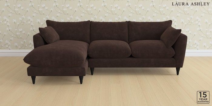 6.12.1 Buy Casterton by Laura Ashley Medium Sofa Chaise - Left Hand Alwyn Velvet Chocolate Brown Low Turned - Black from the Next UK online shop Click here to use our accessible website