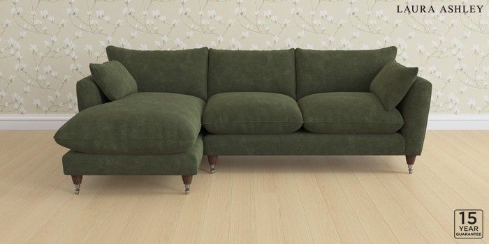 6.12.1 Buy Casterton by Laura Ashley Medium Sofa Chaise - Left Hand Alwyn Velvet Ivy Green Low Chrome Castor - Chestnut from the Next UK online shop Click here to use our accessible website