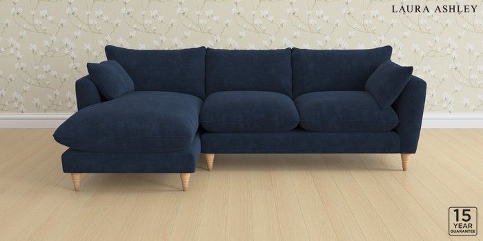 6.12.1 Buy Casterton by Laura Ashley Medium Sofa Chaise - Left Hand Alwyn Velvet Midnight Navy Low Turned - Light Oak from the Next UK online shop Click here to use our accessible website