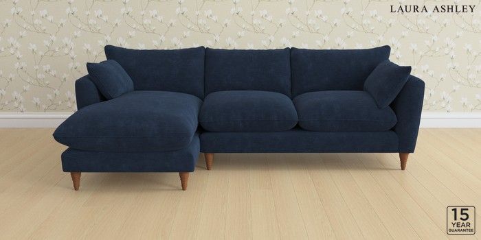 6.12.1 Buy Casterton by Laura Ashley Medium Sofa Chaise - Left Hand Alwyn Velvet Midnight Navy Low Turned - Teak from the Next UK online shop Click here to use our accessible website