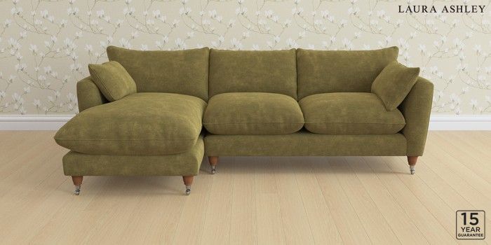 6.12.13 Buy Casterton by Laura Ashley Medium Sofa Chaise - Left Hand Alwyn Velvet Olive Green Low Chrome Castor - Teak from the Next UK online shop Click here to use our accessible website