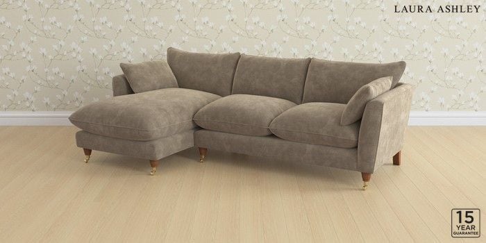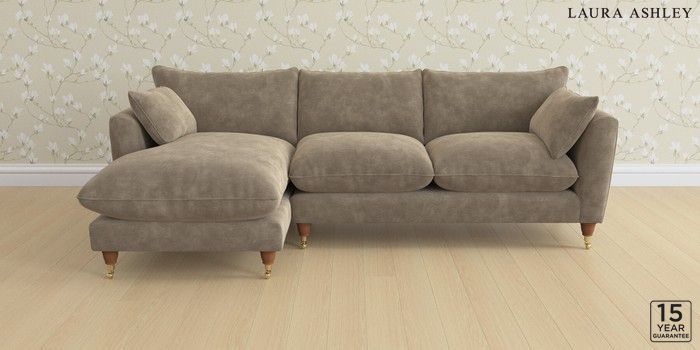 6.12.1 Buy Casterton by Laura Ashley Medium Sofa Chaise - Left Hand Alwyn Velvet Truffle Natural Low Brass Castor - Teak from the Next UK online shop Click here to use our accessible website