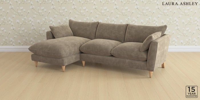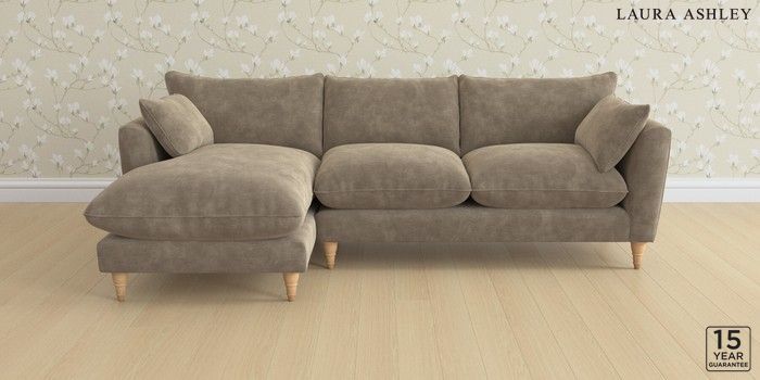6.12.1 Buy Casterton by Laura Ashley Medium Sofa Chaise - Left Hand Alwyn Velvet Truffle Natural Low Turned - Light Oak from the Next UK online shop Click here to use our accessible website