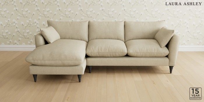 6.12.1 Buy Casterton by Laura Ashley Medium Sofa Chaise - Left Hand Anneliese Natural Low Turned - Black from the Next UK online shop Click here to use our accessible website