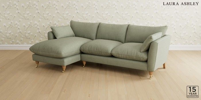 6.12.1 Buy Casterton by Laura Ashley Medium Sofa Chaise - Left Hand Anneliese Sage Green Low Brass Castor - Light Oak from the Next UK online shop Click here to use our accessible website