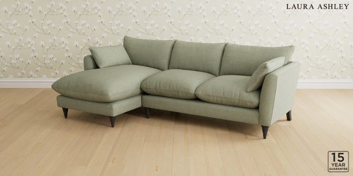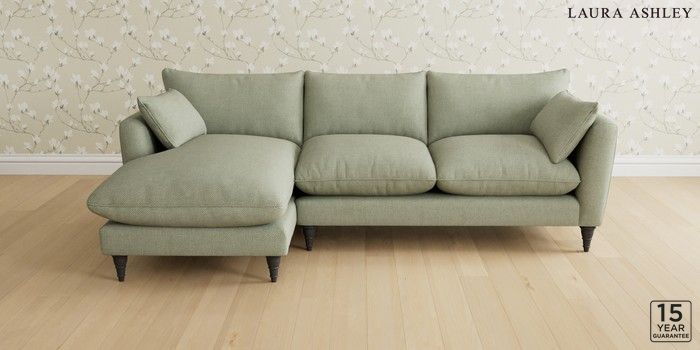 6.12.1 Buy Casterton by Laura Ashley Medium Sofa Chaise - Left Hand Anneliese Sage Green Low Turned - Black from the Next UK online shop Click here to use our accessible website