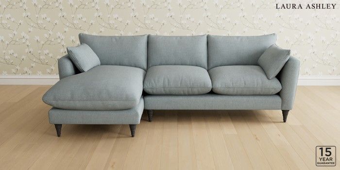 6.12.1 Buy Casterton by Laura Ashley Medium Sofa Chaise - Left Hand Anneliese Seaspray Blue Low Turned - Black from the Next UK online shop Click here to use our accessible website