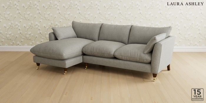 6.12.1 Buy Casterton by Laura Ashley Medium Sofa Chaise - Left Hand Anneliese Steel Grey Low Brass Castor - Teak from the Next UK online shop Click here to use our accessible website