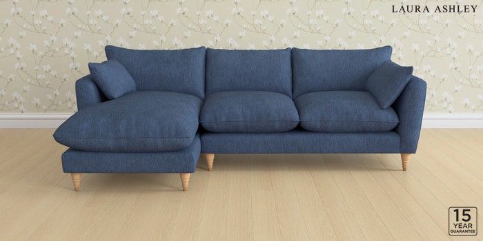 6.12.1 Buy Casterton by Laura Ashley Medium Sofa Chaise - Left Hand Bainton Midnight Navy Low Turned - Light Oak from the Next UK online shop Click here to use our accessible website