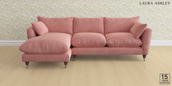 6.12.1 Buy Casterton by Laura Ashley Medium Sofa Chaise - Left Hand Bainton Old Rose Pink Low Chrome Castor - Chestnut from the Next UK online shop Click here to use our accessible website