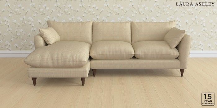 6.12.1 Buy Casterton by Laura Ashley Medium Sofa Chaise - Left Hand Birchgrove Check Oatmeal Natural Low Turned - Chestnut from the Next UK online shop Click here to use our accessible website