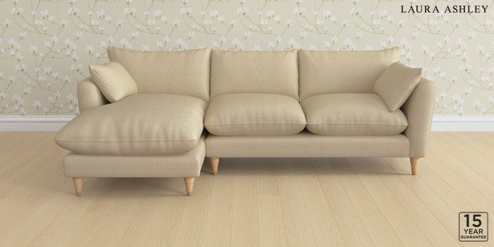 6.12.1 Buy Casterton by Laura Ashley Medium Sofa Chaise - Left Hand Birchgrove Check Oatmeal Natural Low Turned - Light Oak from the Next UK online shop Click here to use our accessible website