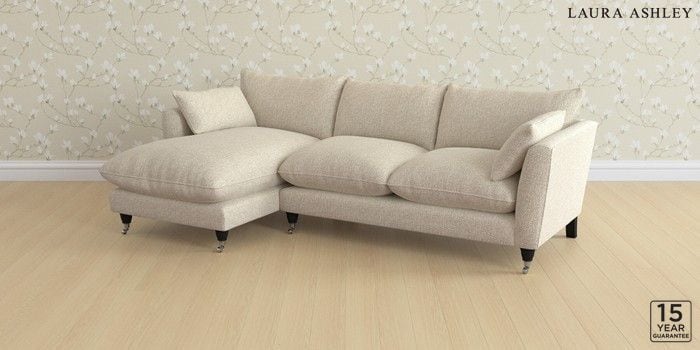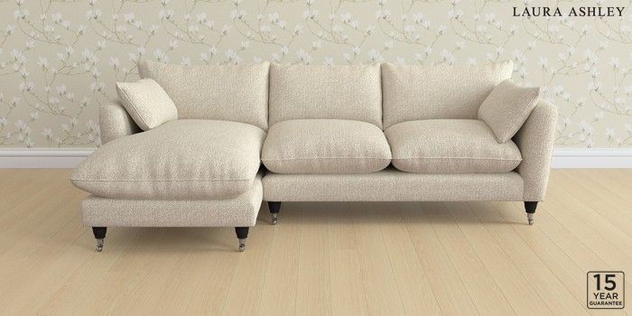 6.12.1 Buy Casterton by Laura Ashley Medium Sofa Chaise - Left Hand Borwick Natural Low Chrome Castor - Black from the Next UK online shop Click here to use our accessible website