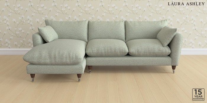 6.12.1 Buy Casterton by Laura Ashley Medium Sofa Chaise - Left Hand Borwick Newport Blue Low Chrome Castor - Chestnut from the Next UK online shop Click here to use our accessible website