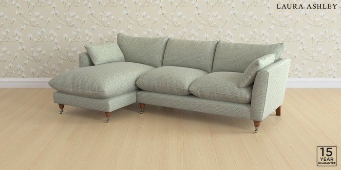 6.12.1 Buy Casterton by Laura Ashley Medium Sofa Chaise - Left Hand Borwick Newport Blue Low Chrome Castor - Teak from the Next UK online shop Click here to use our accessible website