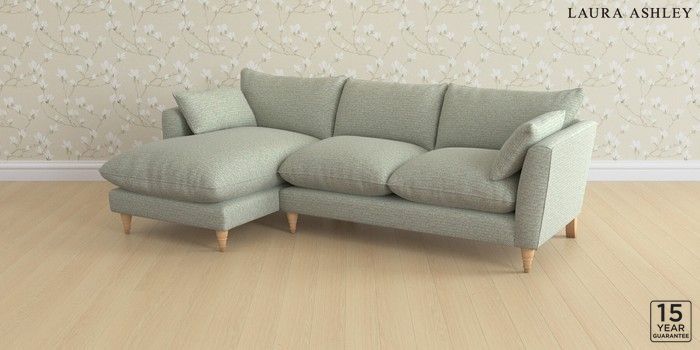 6.12.1 Buy Casterton by Laura Ashley Medium Sofa Chaise - Left Hand Borwick Newport Blue Low Turned - Light Oak from the Next UK online shop Click here to use our accessible website